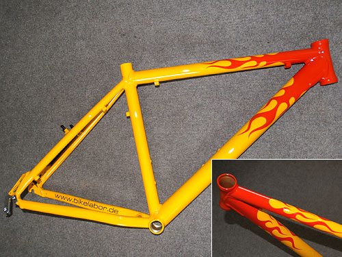 mit renommierten, auf Fahrradrahmen spezialisierte Lackierereien zusammen,